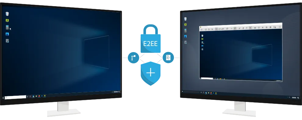 ISL Online utiliza un cifrado basado en el intercambio de claves públicas/privadas RSA 2048/4096 -Bit y cifrado de sesión AES (256 bits), para proteger la transferencia de datos entre los equipos del operador y el cliente.