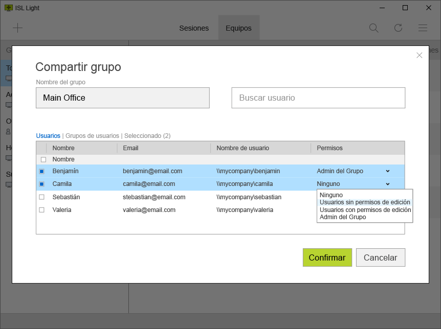 Puedes crear un número ilimitado de cuentas de usuario, y administrar los permisos para todas ellas.